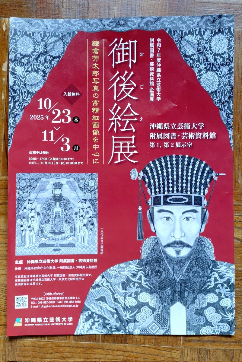 #御後絵展#鎌倉芳太郎 写真の高精細画像を中心に- 2025年10月23日(木)~11月3日(月)[12日間] 10:00〜17:00 ※11月3日(月)のみ午後8時まで開館 #沖縄県立芸術大学 #附属図書芸術資料館 第1・2展示室(首里当蔵キャンパス) #琉球 #歴代 #国王 #肖像画 okigei.ac.jp/experience/exh… pic.x.com/IRYTrZqbZm