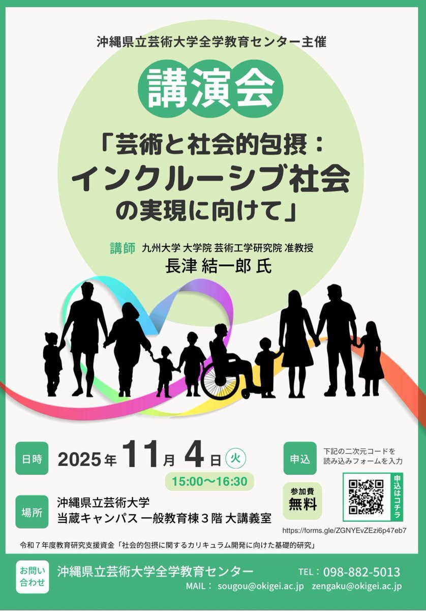 11月4日(火)15時から開催です。 参加は無料ですが、事前申し込みが必要です。 #長津結一郎 #芸術と社会的包摂 #沖縄県立芸術大学 okigei.ac.jp/experience/wor… pic.x.com/hwSyKgFT0a