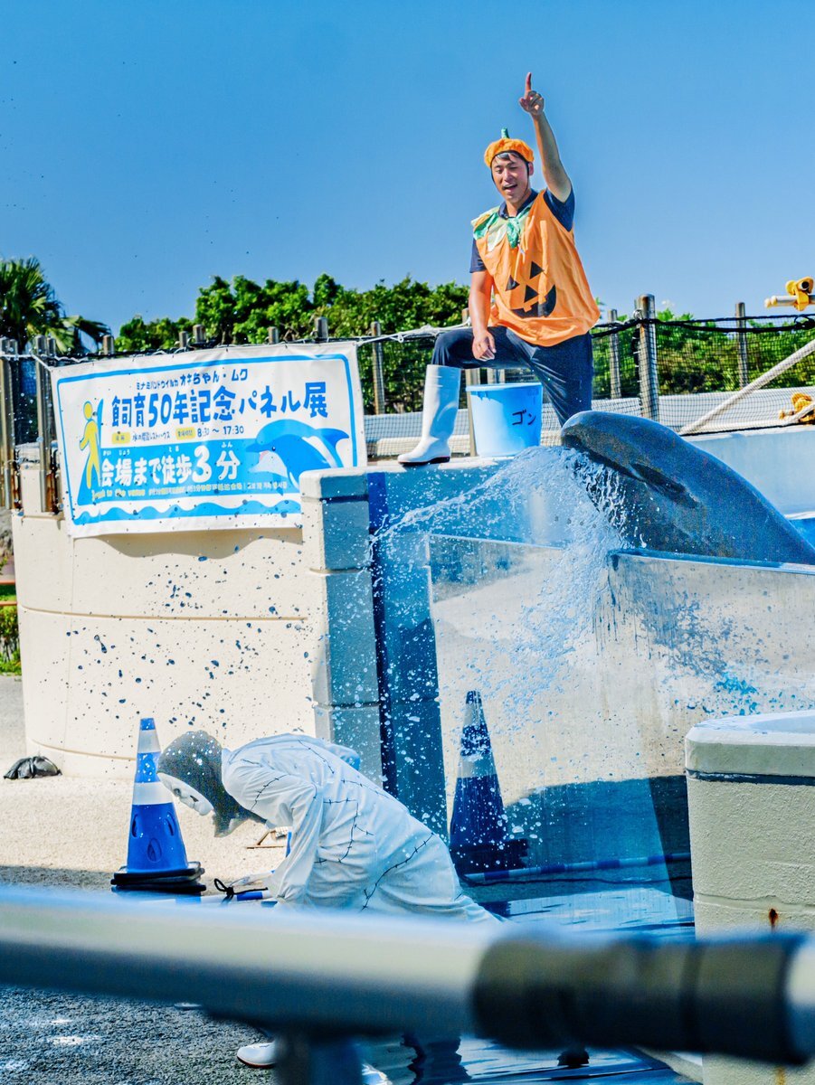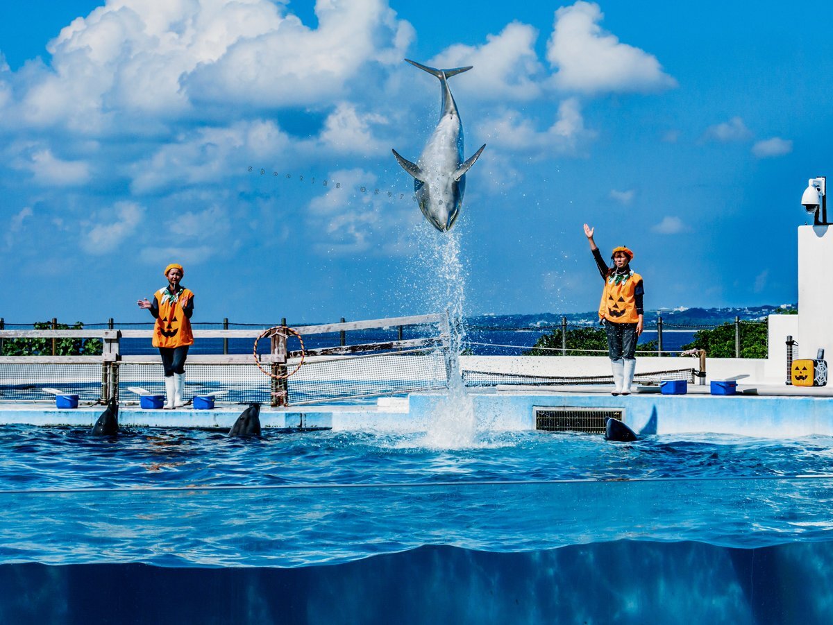 #本部町 #沖縄美ら海水族館 の #ミナミバンドウイルカ「オキちゃん」と「ムク」の飼育50年を記念した特別企画「#ほぼオキちゃんショー」が25日、#オキちゃん劇場 で開かれた。公募で選ばれた、2頭と同年代の40~50代がトレーナーを務めたようです。#沖縄 #イルカ okinawatimes.co.jp/articles/-/170…