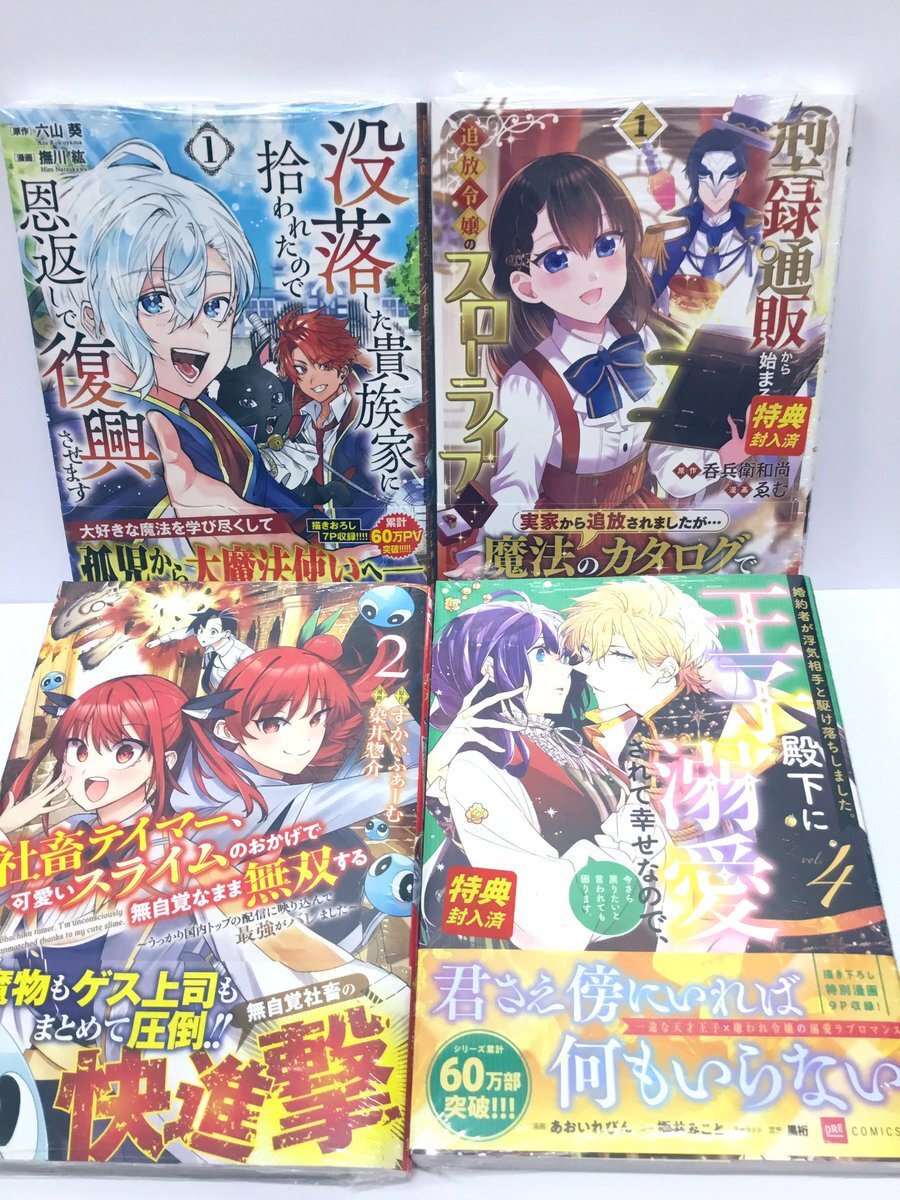 【新刊情報】 / 本日入荷のオススメ異世界コミックス🎉 #没落した貴族家に拾われたので恩返しで復興させます 1巻 #型録通販から始まる追放令嬢のスローライフ 1巻 #社畜テイマー可愛いスライムのおかげで無自覚なまま無双する 2巻 \ #アルファポリス #集英社 #TSUTAYA太子店 pic.x.com/JQ0NJFqB6m
