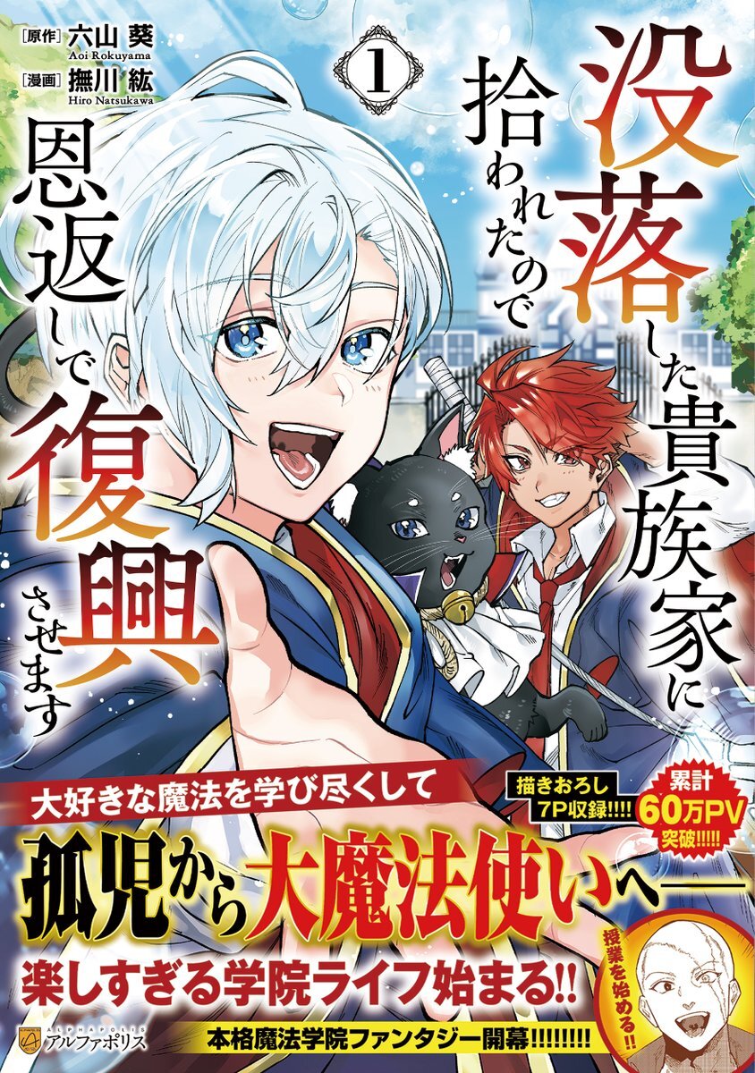 本格魔法学院ファンタジー開幕!! #アルファポリスコミックス 「没落した貴族家に拾われたので恩返しで復興させます1」(撫川紘 / 画 六山葵 / 作)紙&電子同時刊行! alphapolis.co.jp/book/detail/80… #アルファポリス