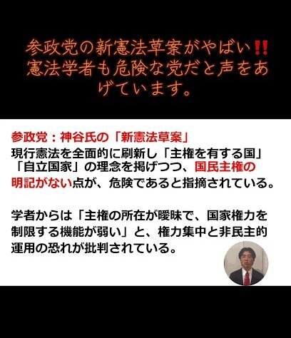 ⬛️〰️参政党の新憲法は危険⚠️〰️ #参政党を信じてはいけない‼️ ▪️憲法三原則破壊▪️ 〰️#人権無し💥 〰️#治安維持法 も肯定⚠️ 〰️国民を取り締まる #スパイ防止法も始まる⚠️ pic.x.com/QT3lWBno38 x.com/yiqisixiang11/…
