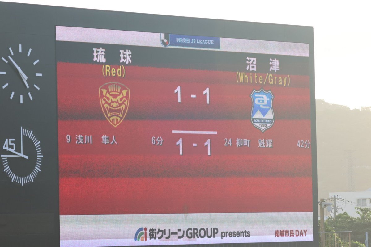 柳町の同点ゴール\(^_^)/ よく追いついた 後半頑張ろう! #アスルクラロ沼津 #沼津サポ沖縄遠征 #沼津サポ琉球遠征 pic.x.com/qo3Se7o7bl
