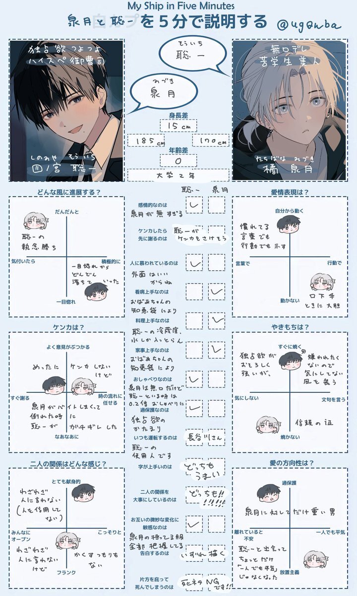 泉月と聡一(みづきとそういち)って何? 私のオリジナルBLカプでございます 白い方が「橘 泉月(たちばな みづき)」で黒い方が「四ノ宮 聡一(しのみや そういち)」でございます #泉月と聡一 x.com/ug0nba/status/…