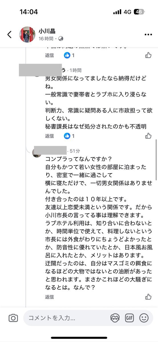 結局、前橋市長を応援してる人は法令遵守とか頭に無いのだな。 コンプライアンスって何とか、フェイスブックで言ってるけど、こんな人達が支援層なん? そりゃ、妻帯者とラブホ行って何も無いとしても問題無いとなるわな。 #前橋市長 #コンプライアンス #法令遵守 pic.x.com/MpybejCeU5 x.com/ciemwUop8s4686…