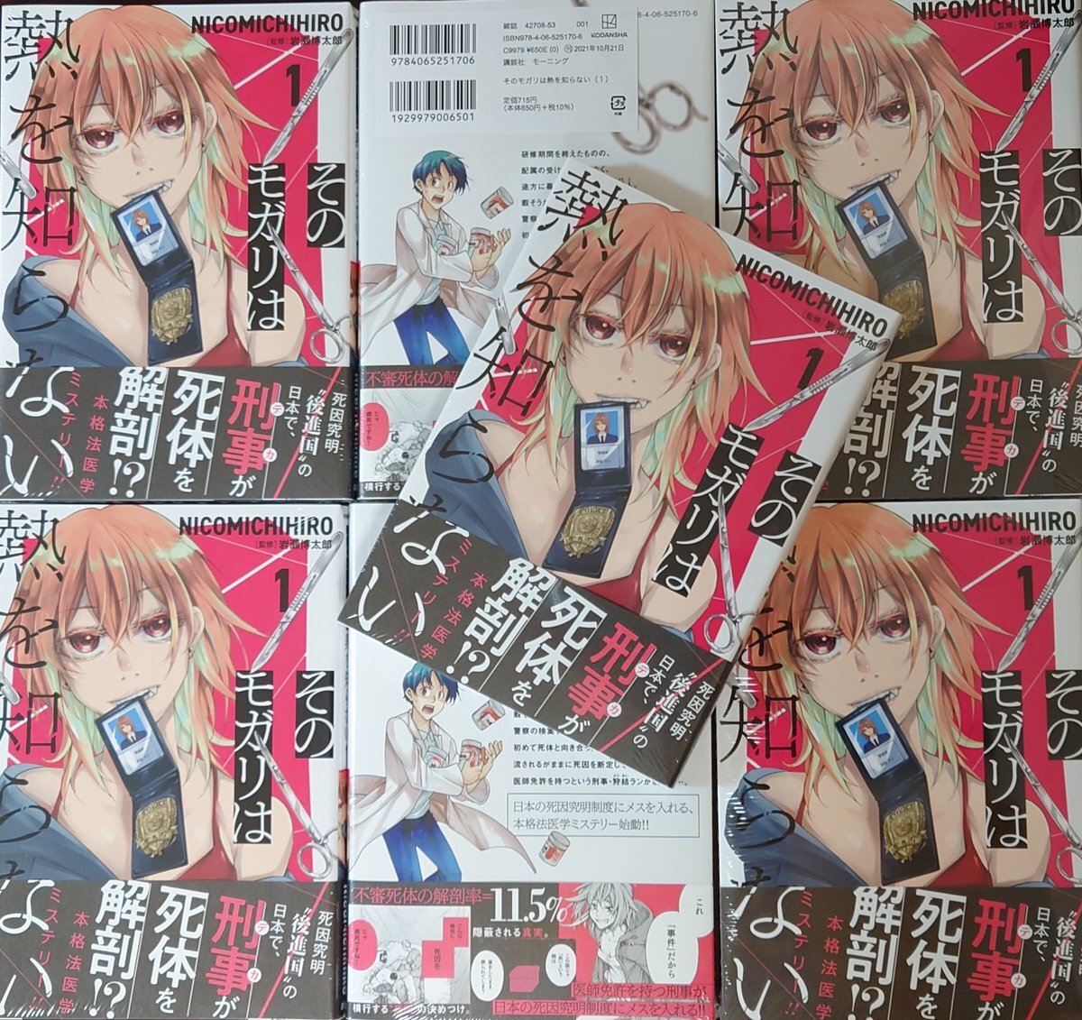 献本届きました!!! 『#そのモガリは熱を知らない』単行本1巻明日21/10/21、いよいよ発売です!✨🎉🥼@NICOMICHIHIRO #ミステリー #法医学 #刑事モノ #バディ がお好きな方…ぜひお手にとってみてください🙌 手前味噌ですが本当にカバーデザイン大好きです…。 pic.x.com/8sLZWg7dV3