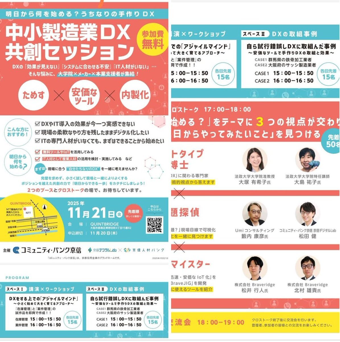11月21日、京都信用金庫主催「中小製造業DX共創セッション@大阪 京橋駅付近」に登壇しますっ!