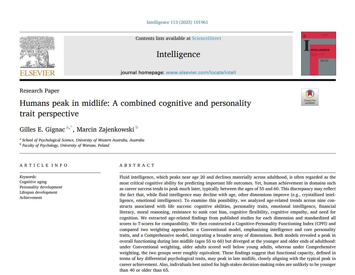 人間の総合的な能力は55〜60歳で最も高くなることが判明 若い頃にピークを迎えるのは「新しい問題を解く力」だが、年齢とともに経験・知識・感情の安定・柔軟な思考が伸び、それらが合わさることで中年期に最高のバランスに 人生経験が積み重なるほど、人はより賢くなる。