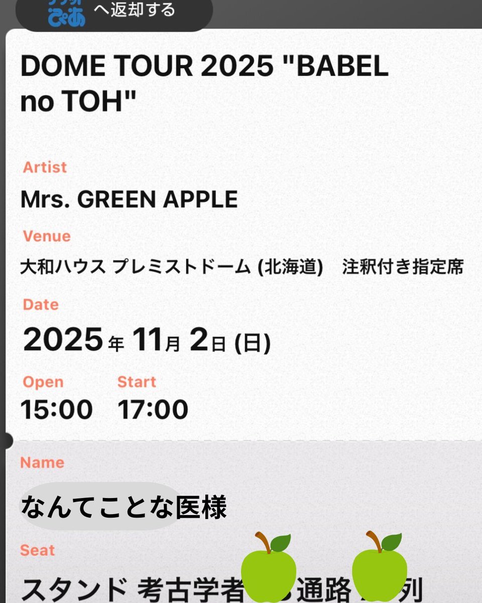 取れた…注釈席…まじか…行けるのかバベルーーーー!!!!!!!!🍏💛❤️💙 #BABELnoTOH #京セラドーム #MrsꓸGREENAPPLE #注釈付き指定席 #マジカルコードから全落ち からの今ここ← pic.x.com/ouSW6Vlr5a