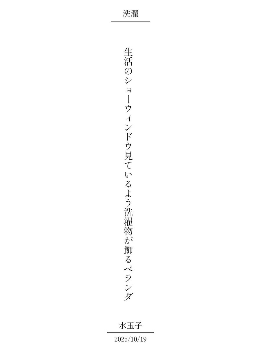 生活のショーウィンドウ見ているよう洗濯物が飾るベランダ #短歌 #短歌記念日 #洗濯をテーマに短歌を作ろう pic.x.com/H5Fsf3GgBh x.com/tankazine/stat…