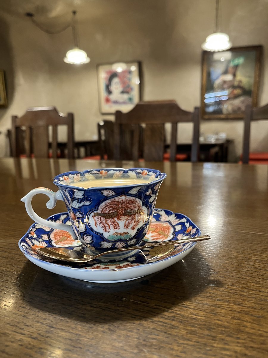 空気がひんやり感じられる夕方 今日はロイヤルミルクティ 上質な茶葉を牛乳でしっかり煮出しています ゆったりしたひとときを。 #広島喫茶店 #朝日珈琲サロン #広島カフェ #洞窟風 #隠れ家 #おひとりさま #読書に最適 #ゆっくりできます #非日常空間 #純喫茶 #ロイヤルミルクティ pic.x.com/1ElsQ7GUBx