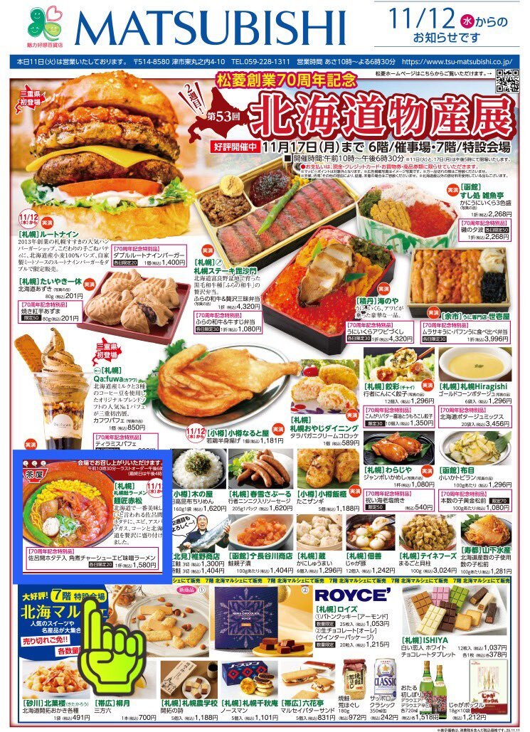 🍜 #札幌鮭ラーメン麺匠赤松・赤松デス 【店舗は通常営業デス】 11/12〜17 創業70周年 #津松菱北海道物産展 に出店致します。 2020年の初出店から 今回で5回目の出店となります!! 1年振りの #津松菱 出店デス🤚 #麺匠赤松 大好きな #津松菱 に 再び帰ります〜〜😄🤚 pic.x.com/1LiR30beyq