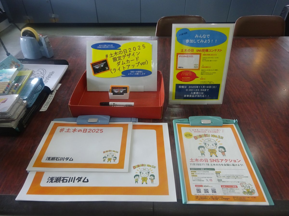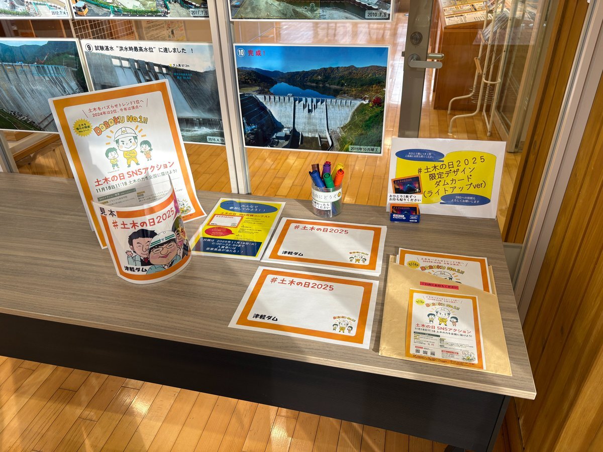 【11月18日は土木の日】 #浅瀬石川ダム 資料館・ #津軽ダム 資料展示室ではSNS用シートや限定カードを配布しています。 #土木の日2025 で土木への想いを一斉に投稿して、土木を盛り上げましょう! さらに、津軽ダムから下流を見下ろすと…何か見えるかも👀 pic.x.com/CM2gpHz5nn