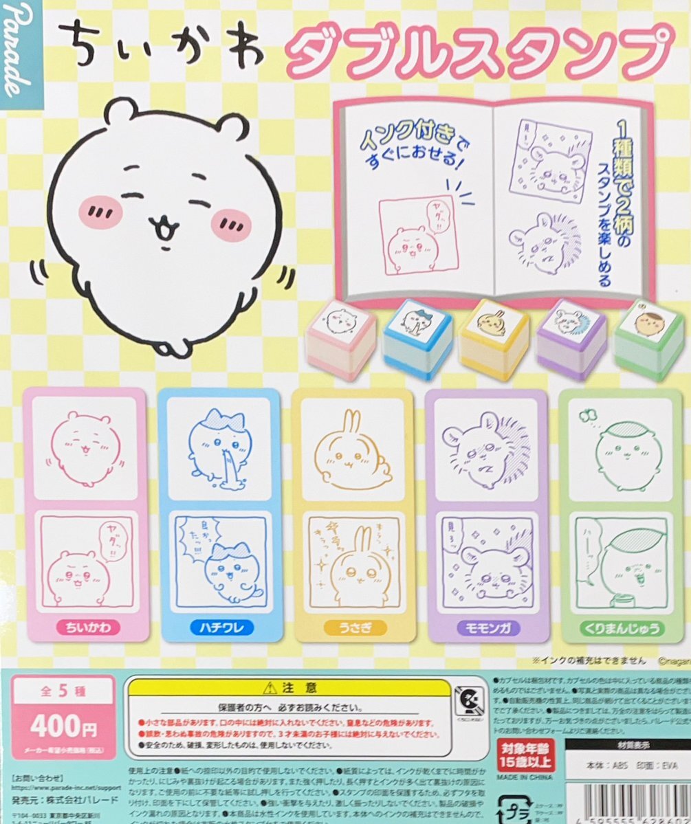 【新商品入荷情報】 『ちいかわ ダブルスタンプ』 入荷しました! 皆様のご来店お待ちしております! #浅草 #浅草がちゃ処 #ガチャ処 #ガチャガチャ #ガチャ #ガシャポン #ガチャポン #カプセルトイ #パレード pic.x.com/8xjUyeMn5S