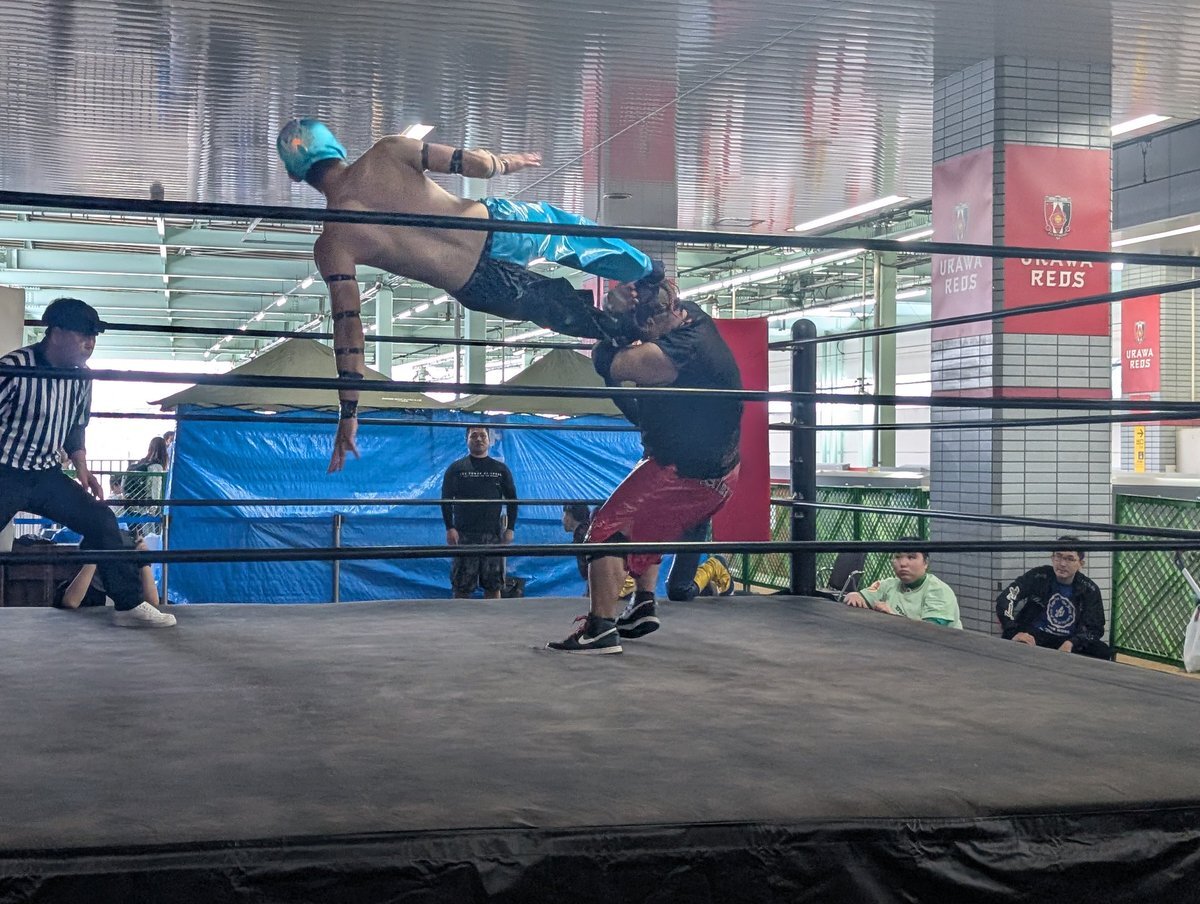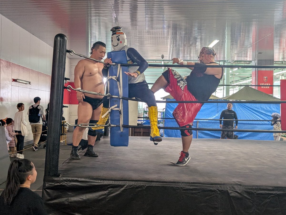 浦和美園まつり 駅のホームでプロレス 場外乱闘多めで、めっちゃ楽しい。 午後は12時30分くらいかららしい。 また、来よう。 #浦和美園まつり #AlmaLibre pic.x.com/0V3Zu54Hjn