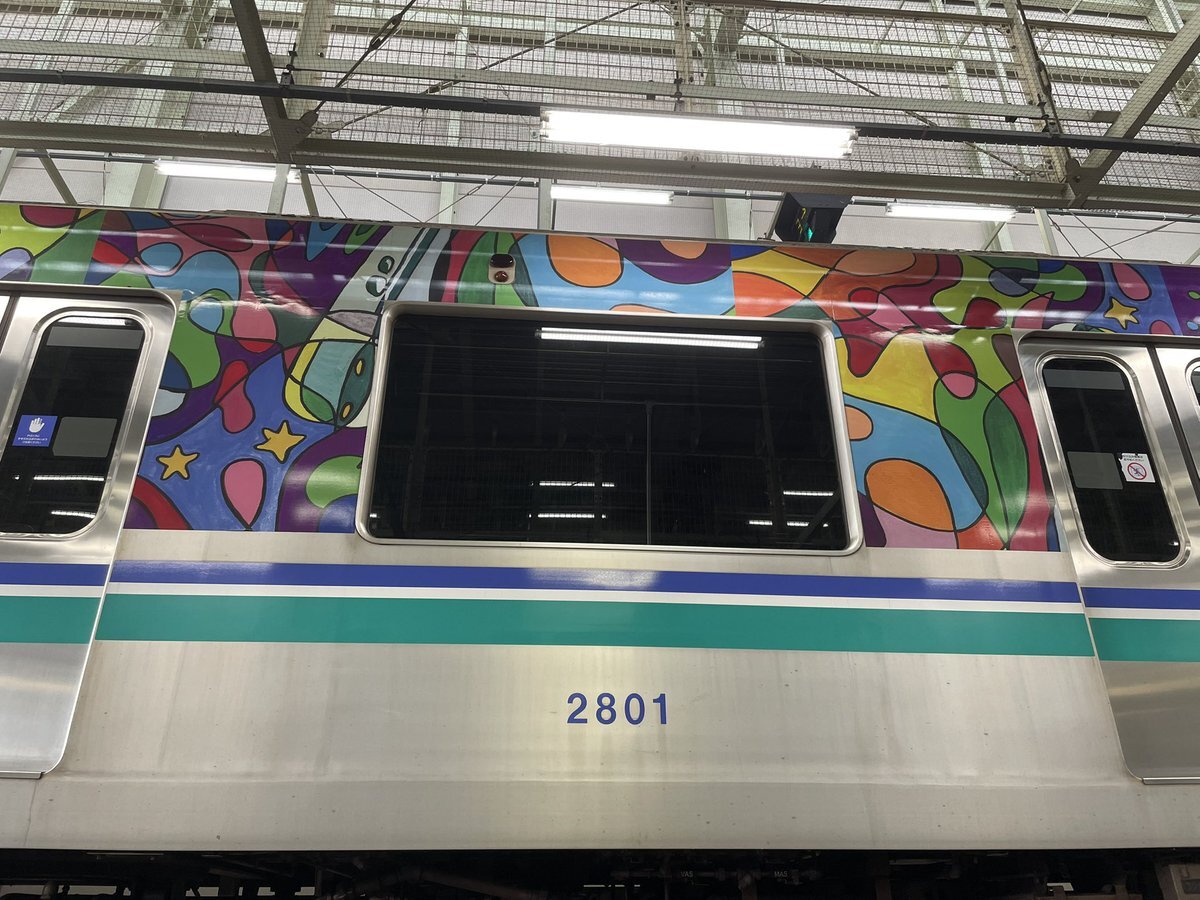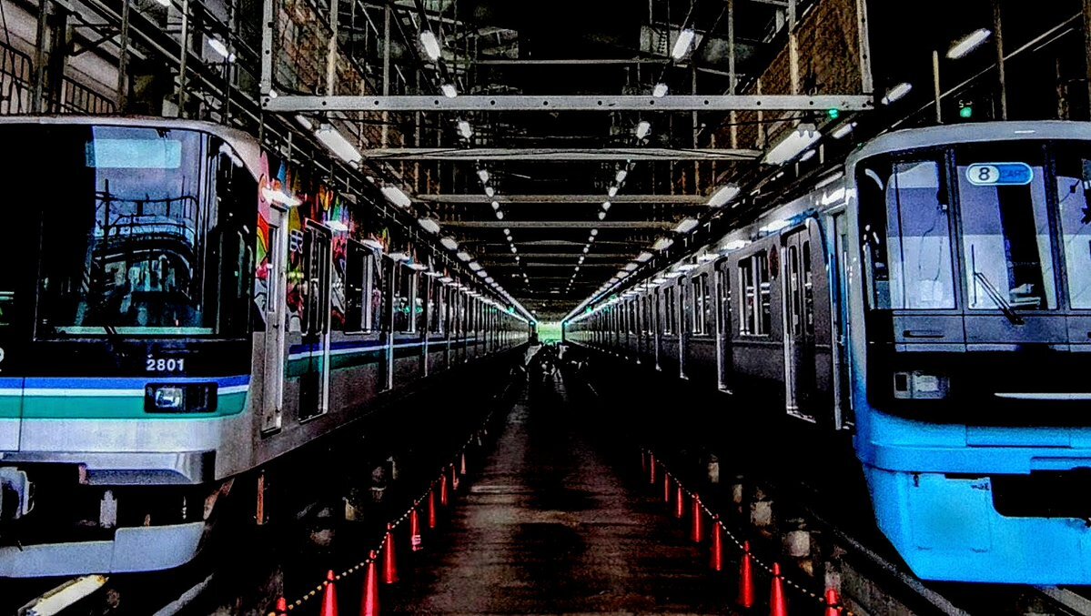 絵に描いた様な 一点透視法  #浦和美園車両基地 埼玉高速鉄道 2000系 #Thanks25 カラフル 東急 3000系 第11回 #浦和美園まつり マジック使用 #やり過ぎ写真加工 pic.x.com/Y5jfeh6JY9