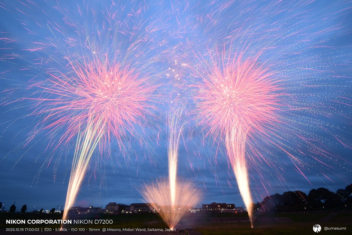 【雨も降らず見事な花火が打ち上がる】 10月19日(日) 17:00~17:30で浦和美園駅周辺で行われた #浦和美園まつり "名物"の秋の花火として『花火大会』が実施されました。 ※ウニクス浦和美園近く"美園東2丁目第1公園"付近より撮影しております #埼玉フォト #花火 #浦和美園 #浦和美園まつり #秋花 pic.x.com/UdoubGAfxH x.com/kasukabe_newsc…