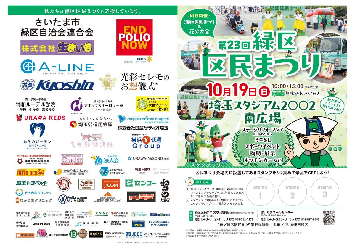 【第23回緑区区民まつりまであと2日✌️✨】 10月19日(日)に開催される #緑区区民まつり と同日に、#浦和美園まつり&花火大会が開催されます🎆 見どころ満載なプログラムがたくさんありますので、是非どちらにもご来場ください🥳 city.saitama.lg.jp/004/001/002/00… pic.x.com/PIfS5SNL8S