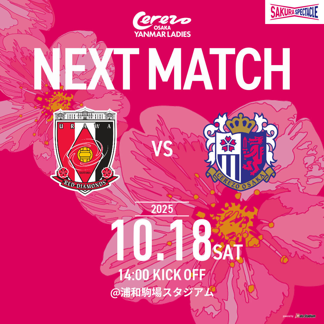 次の対戦カードは 🏆2025/26 SOMPO WEリーグ 第11節 🆚三菱重工浦和レッズレディース 🗓 10/18 14:00キックオフ 🏟#浦和駒場スタジアム #セレッソ大阪ヤンマーレディース pic.x.com/FWNZAEaSWD