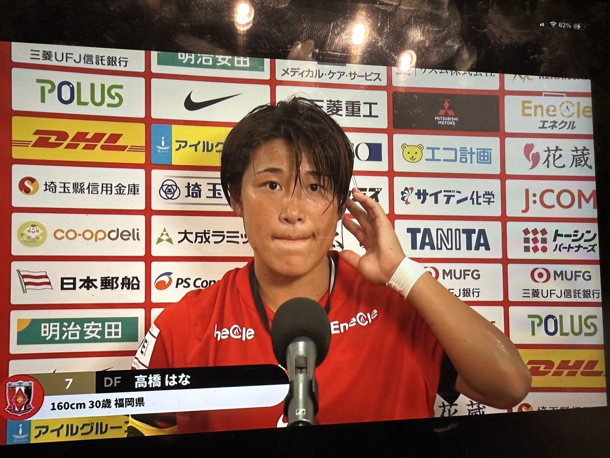 雨で寒かったけど、勝ったー‼️ DAZNでのはなちゃんのインタビュー❗️ ん⁉️福岡❓30歳❓ #三菱重工浦和レッズレディース #高橋はな #浦和駒場スタジアム #WEリーグ #DAZN pic.x.com/743UsWgKwP