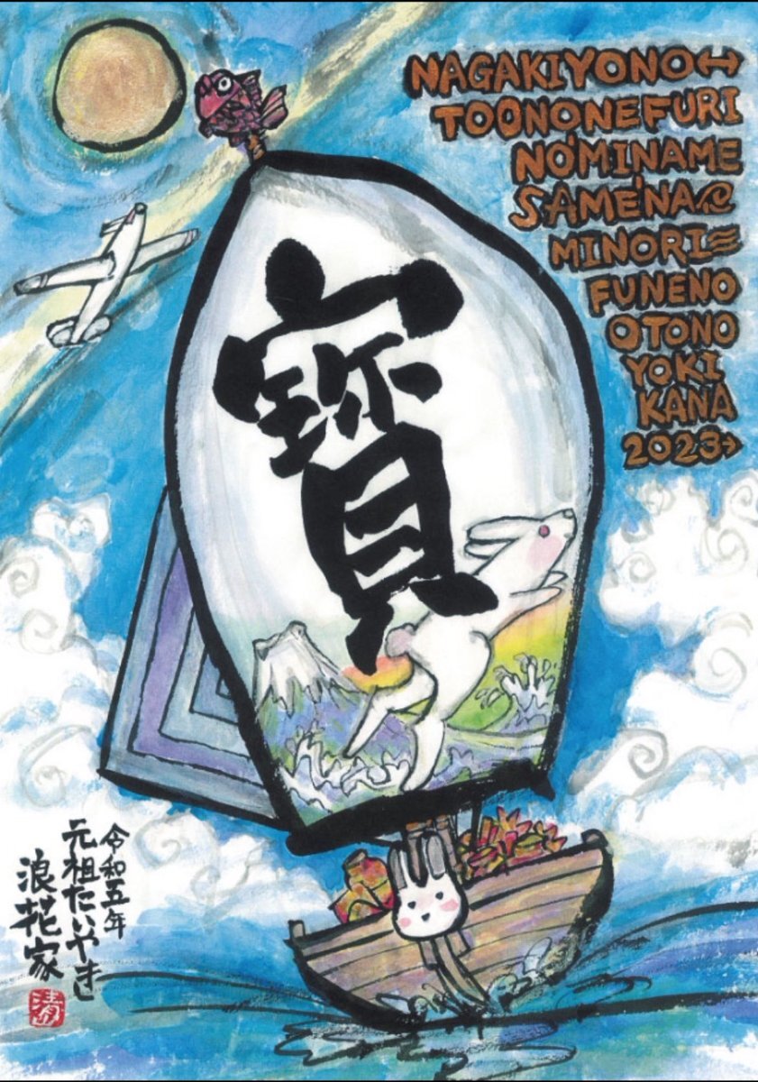 2022(令和四年) 卯年🐇寶船⛵️の画 なかきよの とおのねふりの みなめ〜‥ この画は大好きなトップガン2からのインスパイアな作品です🙂トムさまとジェニファーさんの素敵なシーン🎬をオマージュして😎✈︎✨🌟 #浪花家総本店 #asakusananiwaya #kamakura_naniwa #大阪浪花家 #seizanSEIZAN1 pic.x.com/Y6XBWjvPoX