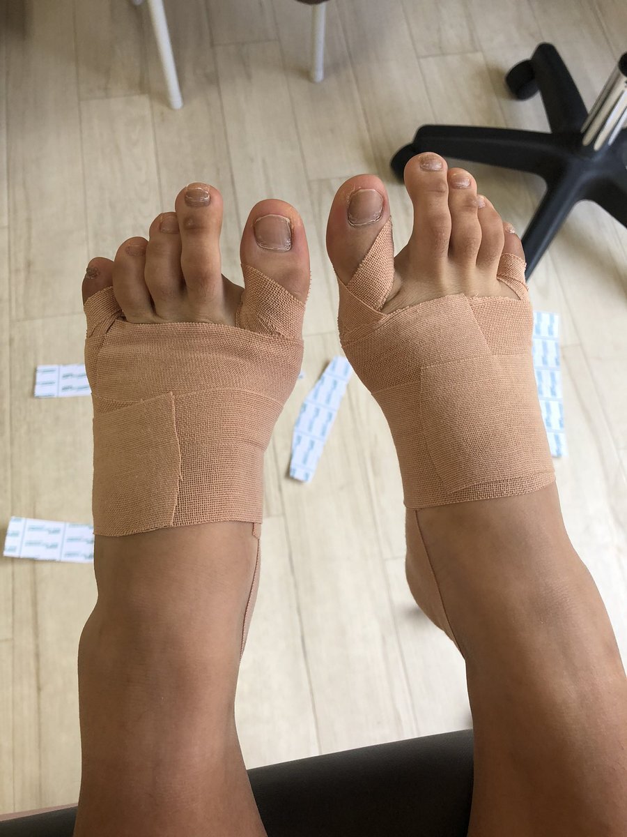 今日は外反母趾、浮き指の患者さんが来られました。 この患者さんは中学生です🦶 踵に重心がいくため反張膝になりO脚が顕著でした。 このままでは痛みが絶対出てきます🆘 皆さんのお子さんの足は大丈夫ですか⁉️ #外反母趾 #浮き指 #反張膝 #O脚 #外反母趾予防テーピング pic.x.com/y0PqukNNhj