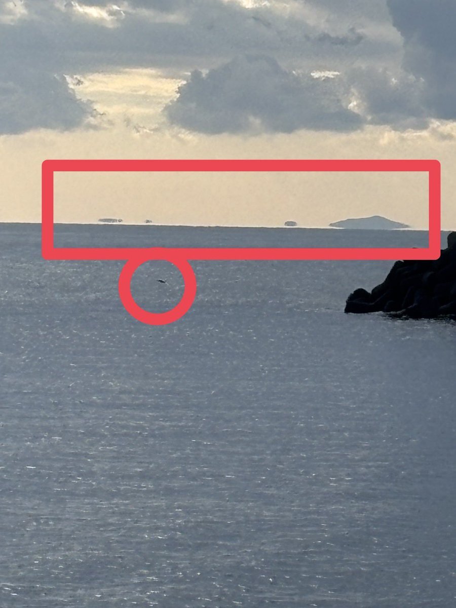 島が浮いてるように見える🏝️👀 蜃気楼の一種で浮島現象って言うんやと🏝️🌊 ではご安全に🙋‍♂️ #蜃気楼 #浮島現象 #ASMR # pic.x.com/eYYOrn38yo x.com/skmfchannel/st…