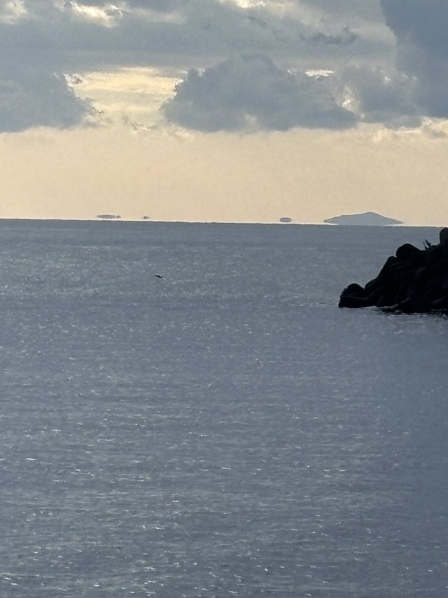 今朝はジョギングで海を見に行き、海岸で魚がジャンプした写真を撮りました。よくみたら、島が浮き上がる「浮島現象」(?)と思われる写真が撮れてました。#浮島現象 #海岸 #ジョギング #蜃気楼 pic.x.com/gQqVcyjK8A