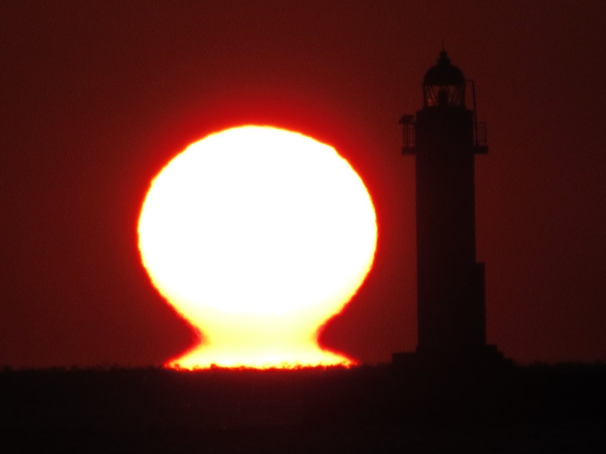 今日は気持ちがいいので、即アップします💓💚💛 贅沢言えば少しだけ薄雲がほしい😇 #だるま夕陽 #グリーンフラッシュ #蜃気楼現象 #夕陽と灯台 #瀬戸の夕景 #浮島現象 #中島埠頭 pic.x.com/kdx7xLiByE
