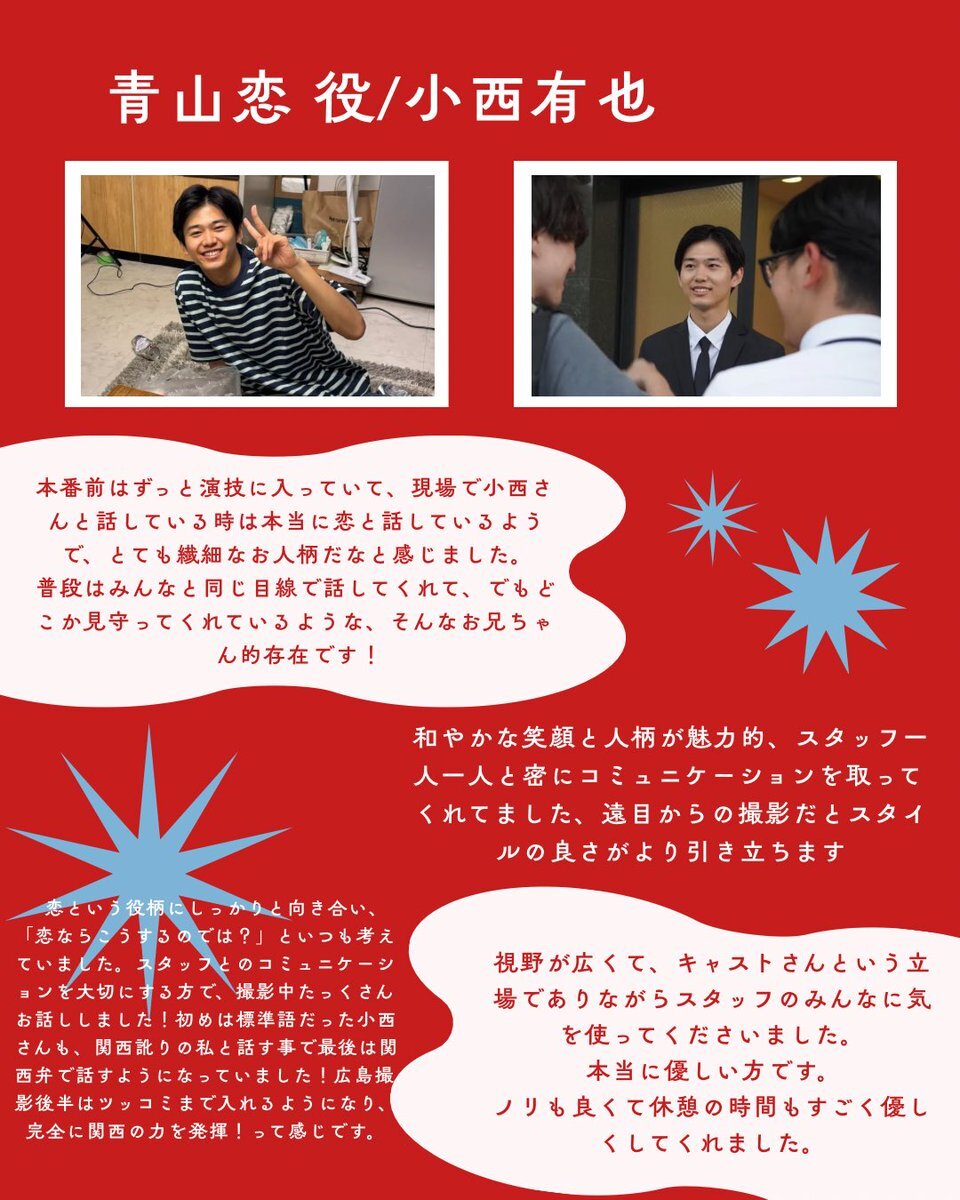 主演キャスト4人の他己紹介④ 今日は青山恋 役/小西有也さんのご紹介です。 ぜひご確認ください! #小西有也 クラウドファンディングはこちら↓ motion-gallery.net/projects/golde… 映画「ゴールデンアワー」 #今井柊斗 #橋口果林 #園凜 #小西有也 監督・脚本 #浮田聡也 制作 #早稲田大学映画研究会 pic.x.com/BKUzE5DImV
