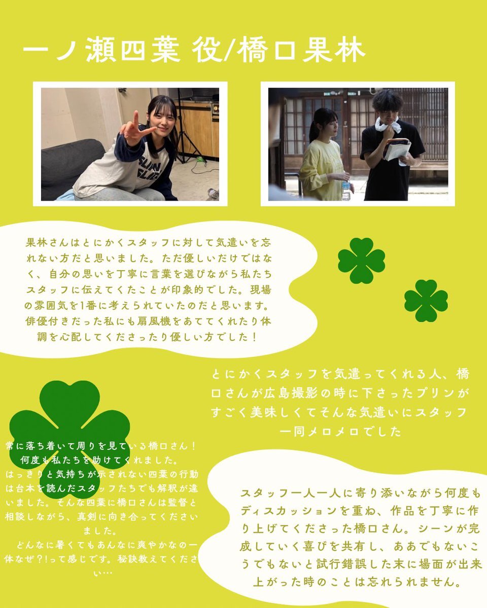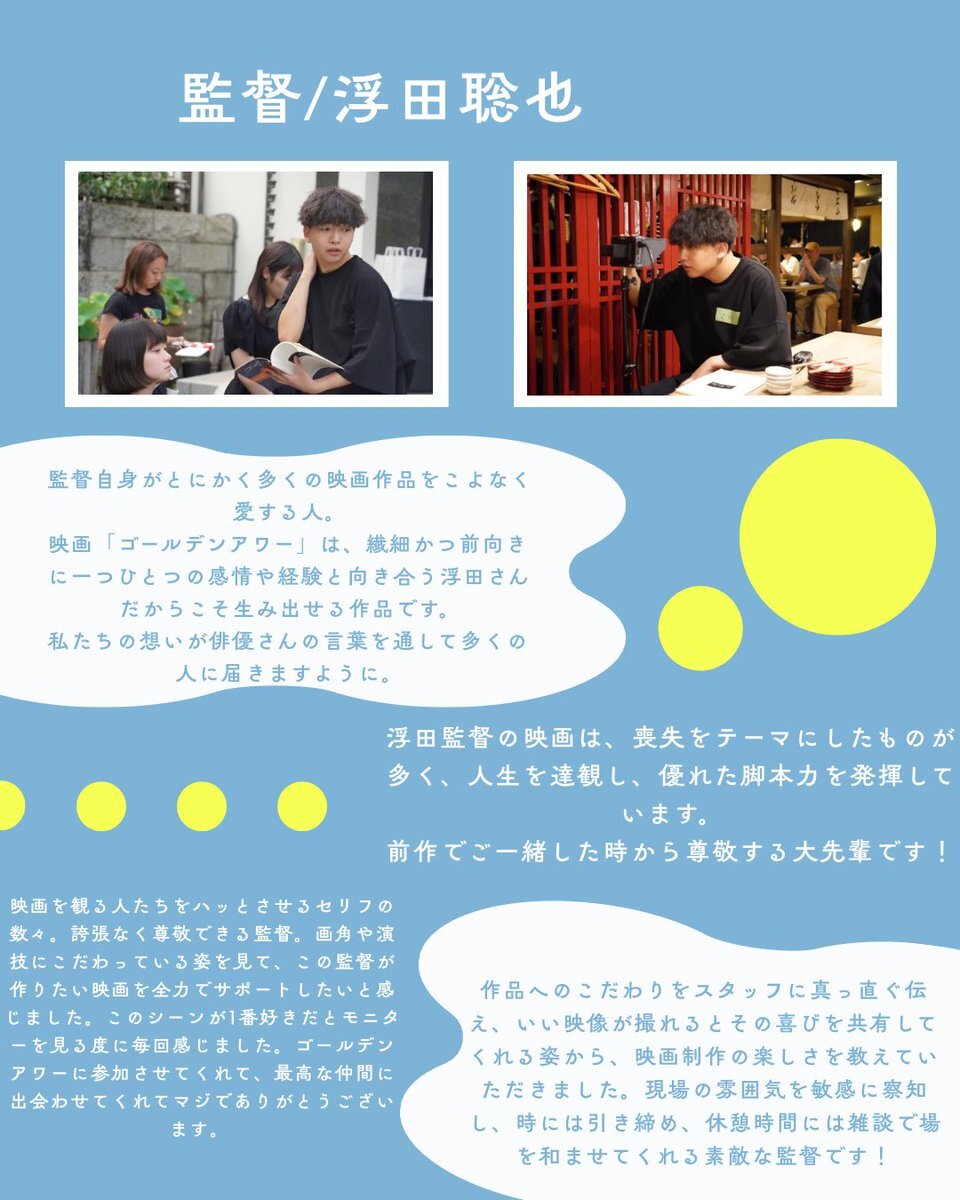 昨日に引き続き、本日も他己紹介第2弾です! 果林さんへのスタッフからのコメントは2枚目に! #橋口果林 クラウドファンディングはこちら↓ motion-gallery.net/projects/golde… 映画「ゴールデンアワー」 #今井柊斗 #橋口果林 #園凜 #小西有也 監督・脚本 #浮田聡也 制作 #早稲田大学映画研究会 pic.x.com/MYrThG8VcJ