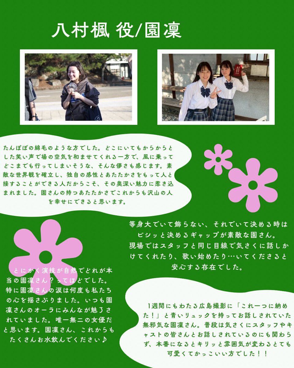主演キャスト4人の他己紹介③ 今日は八村楓役/園凜さんのご紹介です。 ぜひご覧下さい! #園凜 クラウドファンディングはこちら↓ motion-gallery.net/projects/golde… 映画「ゴールデンアワー」 #今井柊斗 #橋口果林 #園凜 #小西有也 監督・脚本 #浮田聡也 制作 #早稲田大学映画研究会 pic.x.com/M5sN8eRtKu