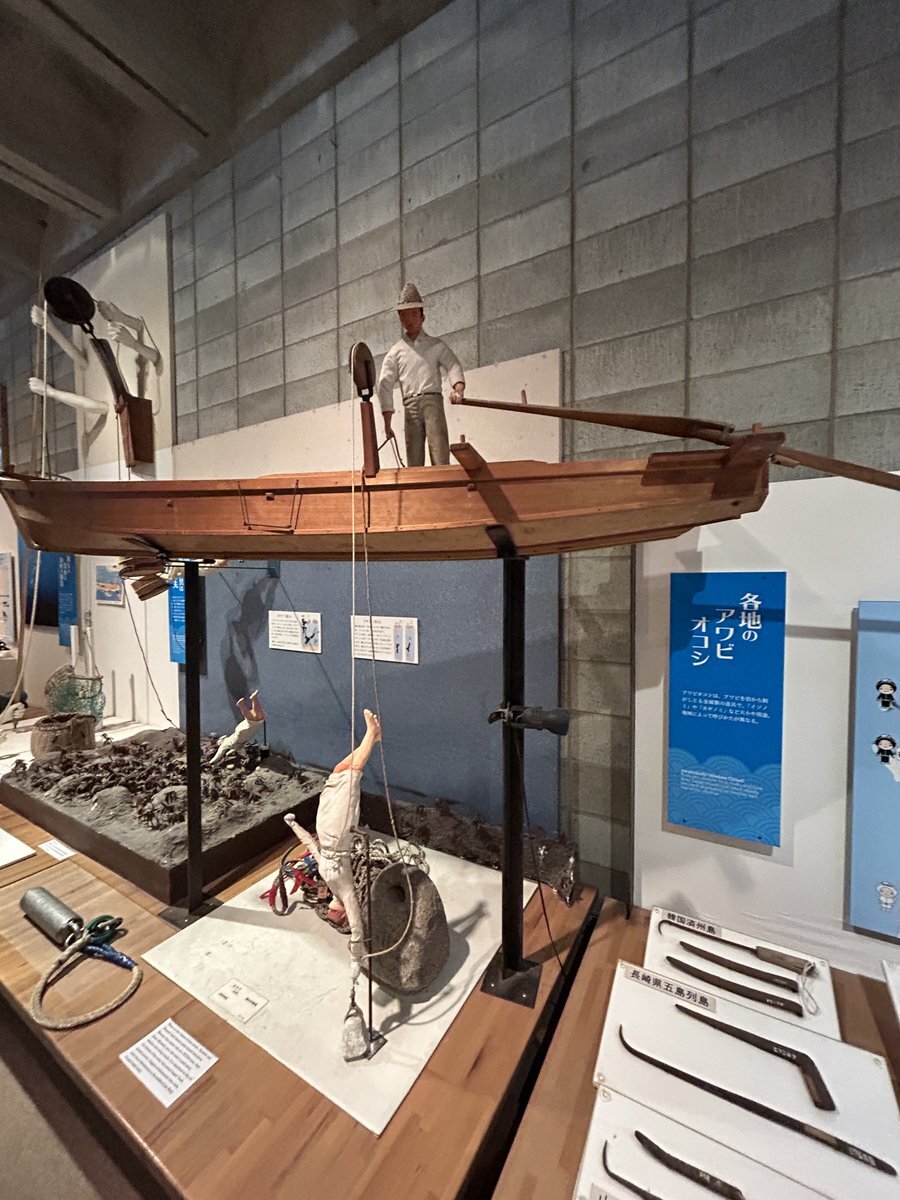 #真珠 養殖には、#海女 の活躍が不可欠でした。海に潜って、真珠を育てるアコヤ貝の採集、核入れ手術を終えたアコヤ貝の放流、赤潮や台風前にアコヤ貝を安全な場所へと移動させるなど、真珠養殖の成功は海女の活躍なしではできないことでした。#海の博物館 #三重の文化観光シリーズ #三重県 #鳥羽市 pic.x.com/99joGtUriA