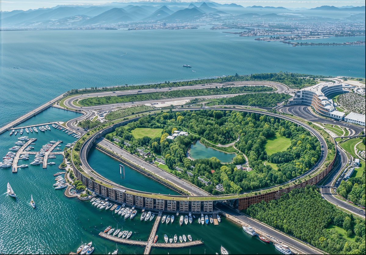 「万博リングを残したい」 NOT A HOTELが考える万博跡地を勝手に提案! 静けさの森をリング一杯に広げ公園化、海側は世界につながるマリーナに。課題のリングは一部をホテル化する事で構造を強化、屋上の遊歩道はこれまで通り。 藤本壮介さんによる万博のレガシーを未来に繋げたいという想いを込めて。