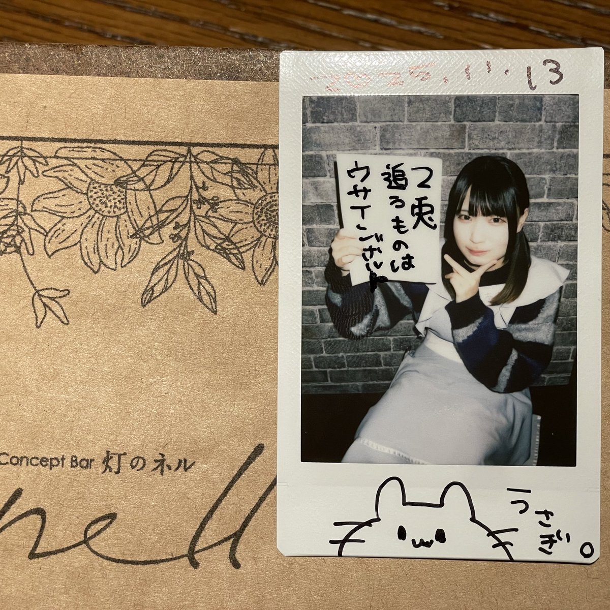 メッセージボード風チェキ 【#2兎追うものはウサインボルト】 アイドルグループ #いきなり東北産 #藤谷美海 ちゃんのメッセージカードの言葉を描いてもらいました 名古屋栄•#灯のnell(#灯のネル) チェキ出演•あむちゃん #aoco 兼任 #海月の街aoco #大須コンカフェ #二兎を追うものはウサインボルト pic.x.com/vMaJDZKnk5