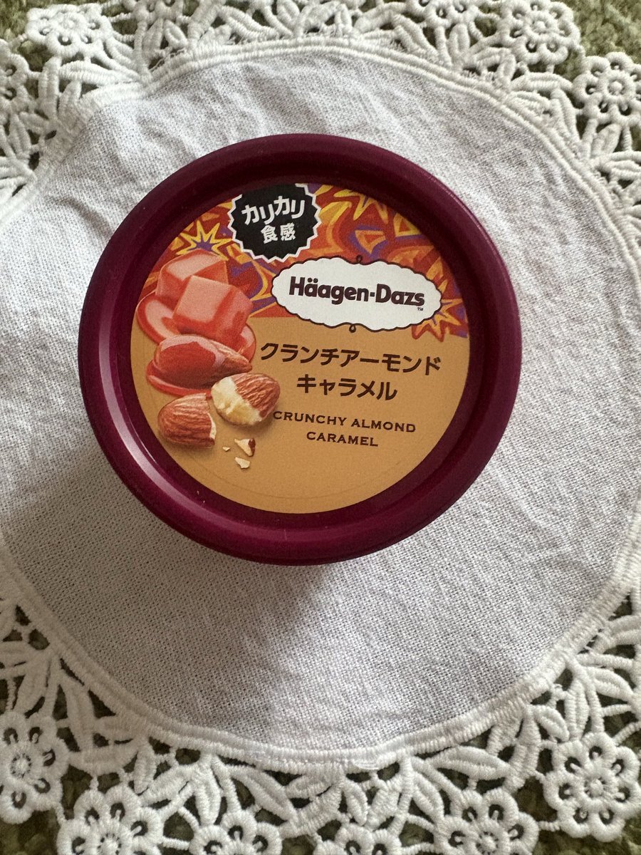 #海瑠アイスクリーム同好会 #クランチアーモンドキャラメル ハーゲンダッツの新作です🍨✨️ 洋菓子店のアーモンドガナッシュが入っている感じで、上部にキャラメルソースがいました( ˊᵕˋ ;) 中も写真とればよかったかな💦 寒いですが 冬はこたつで🍊ならぬ こたつでアイス🍨ですよ(๑•ω•́ฅ✧ pic.x.com/m1uHj1DJAl