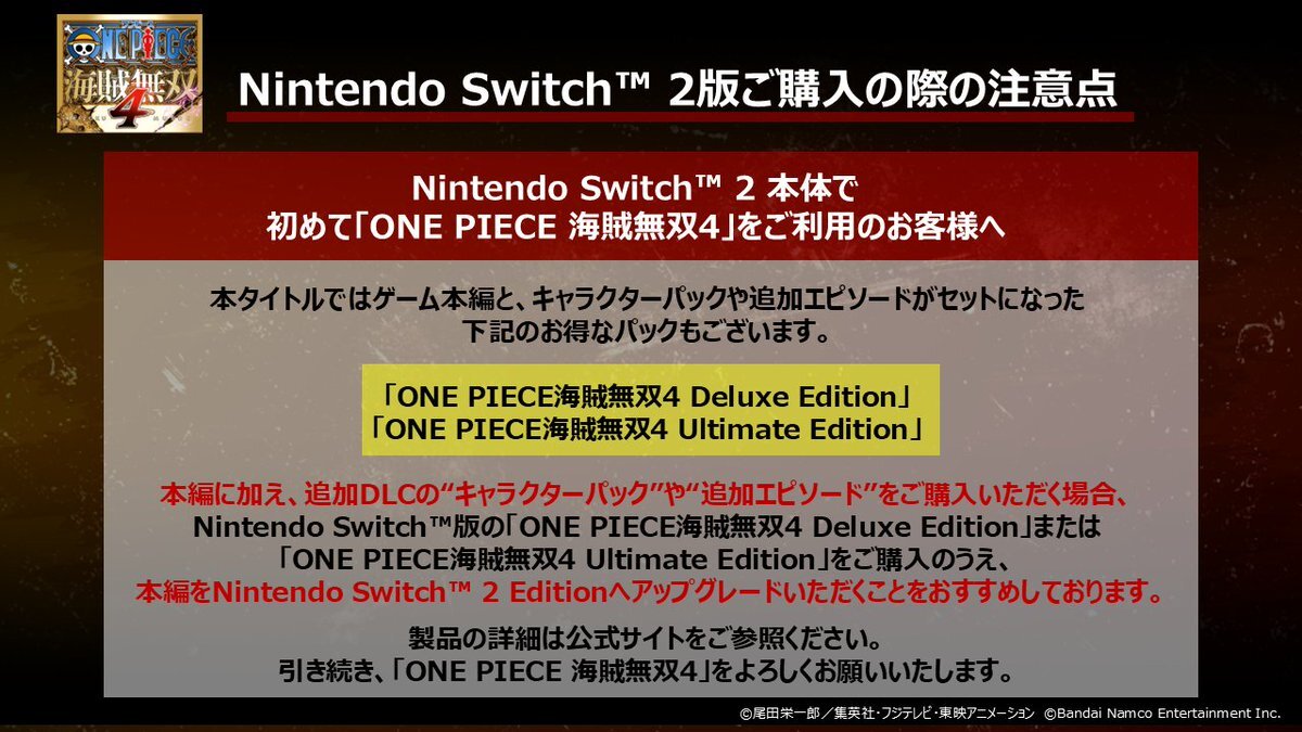 【Nintendo Switch™ 2版ご購入の際の注意点】 Nintendo Switch 2本体で #海賊無双4 を初めてご利用いただく方は、公式HPをご確認の上ご購入を検討いただけますようお願いいたします。 pic.x.com/9jCsvCVU9d