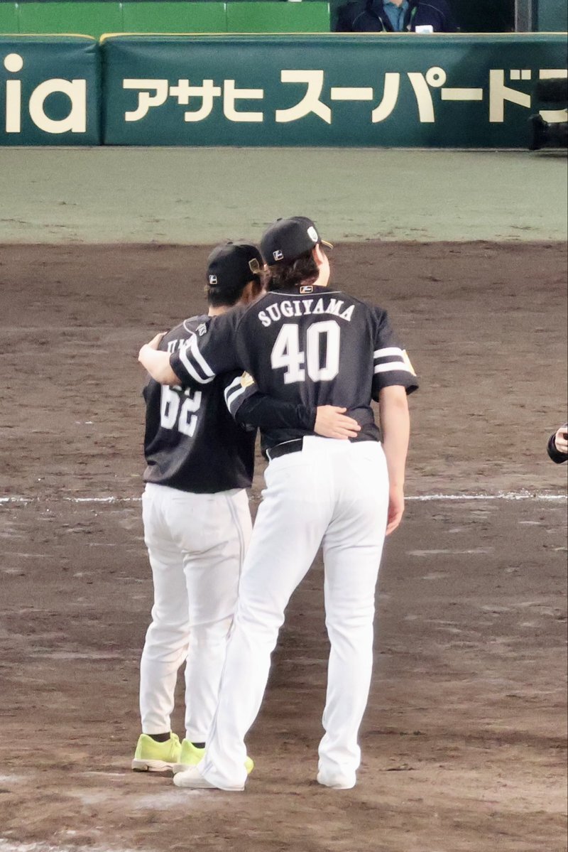 海ちゃんの涙とビールかけあとの各局インタビューでお杉の「海野を1人にしたくなかった」の言葉に号泣😭 今年のMVPは海野と杉山だ!! #ホークス日本一達成 #海野隆司 #杉山一樹 #モイネロもすごい x.com/PayPayOfficial…
