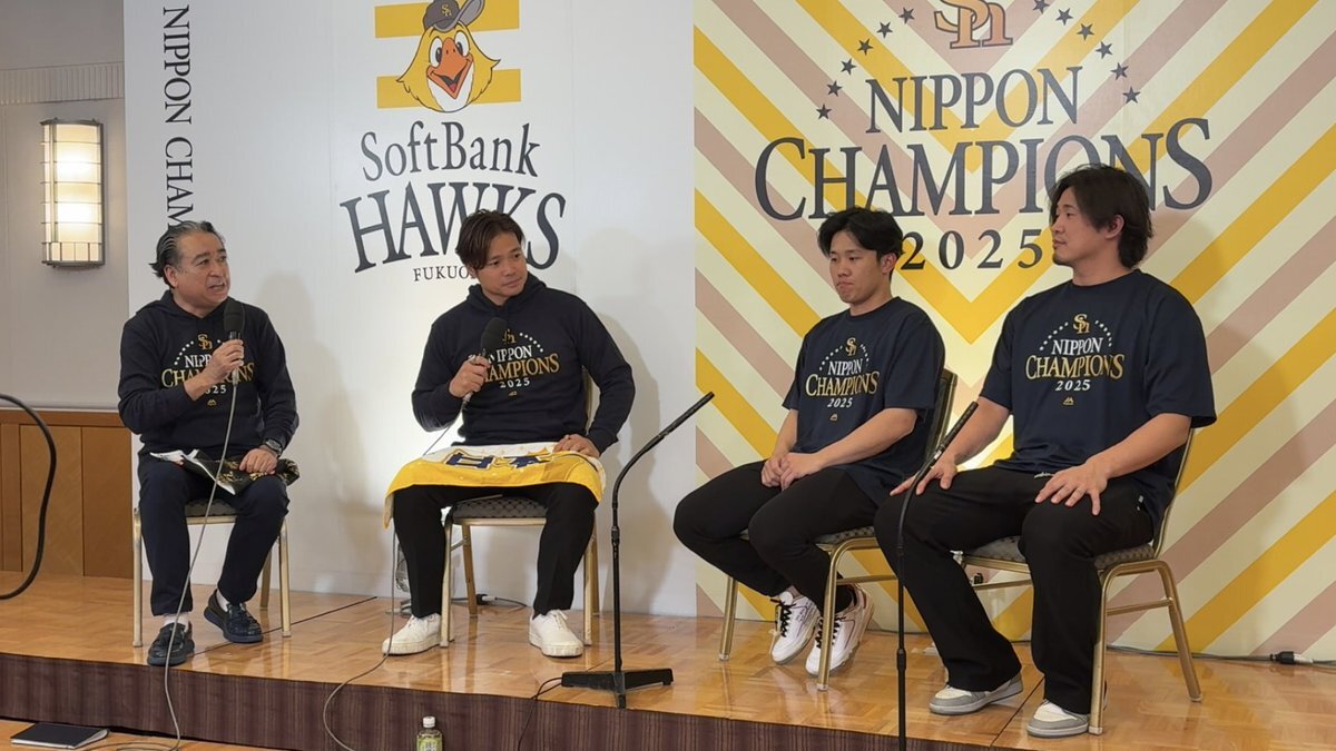 \選手インタビュースタート🦅/ 福岡ソフトバンクホークス 日本シリーズ優勝記念特番 まずは頼れる97年組 #杉山一樹 投手、#海野隆司 選手が登場! 👇🏻ご視聴はコチラ👇🏻 ✅プロ野球セットアプリ x.gd/pPQ4Y ✅番組配信 x.gd/drezU #sbhawks pic.x.com/lbXniqEVNz