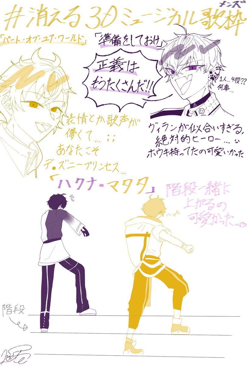 秘密のブルーノの佐伯カミロの登場シーンに囚われてる人間なんですけど、 興奮しすぎて上手く撮れてませんでした誰か助けてください (稲妻の宇佐美を添えて) #消える3Dミュージカル歌枠 pic.x.com/2R23NtqxX3
