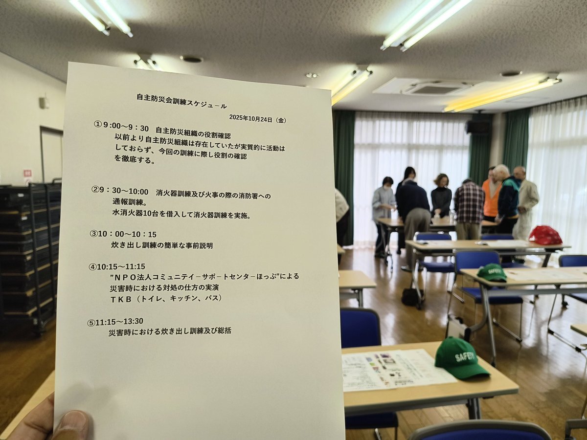 こんばんは。🌂 町内会で自主防災訓練がありました。 防災組織の役割確認、消化器訓練、非常用トイレ、炊き出しの準備&試食など、座学と実践の両方を体験。 #安城市 #篠目町 #自主防災訓練 #防災 #地域の力 #消火器訓練 #非常用トイレ #非常食 #防災用品 #CSホップ #訓練 #大切 pic.x.com/sFvJEFdnfj