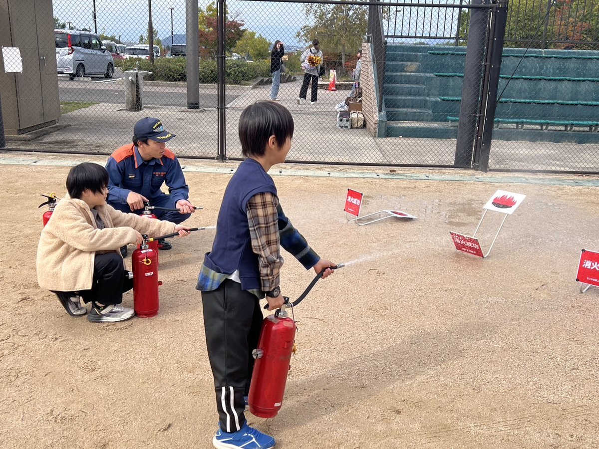 布引グリーンスタジアムで開催された「防災フェス」に参画しました。  はしご車の展示やもくもく体験、消火器訓練などを実施し、多くの方に参加いただきました!! 初めて見るはしご車に子どもたちだけでなく大人も大興奮でした!! #東近江消防 #はしご車 #もくもく体験 #消火器訓練 pic.x.com/WqqHblq9cA