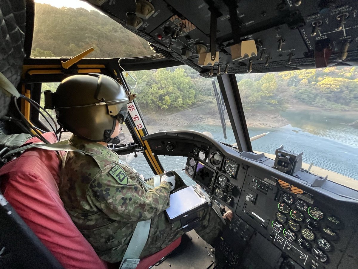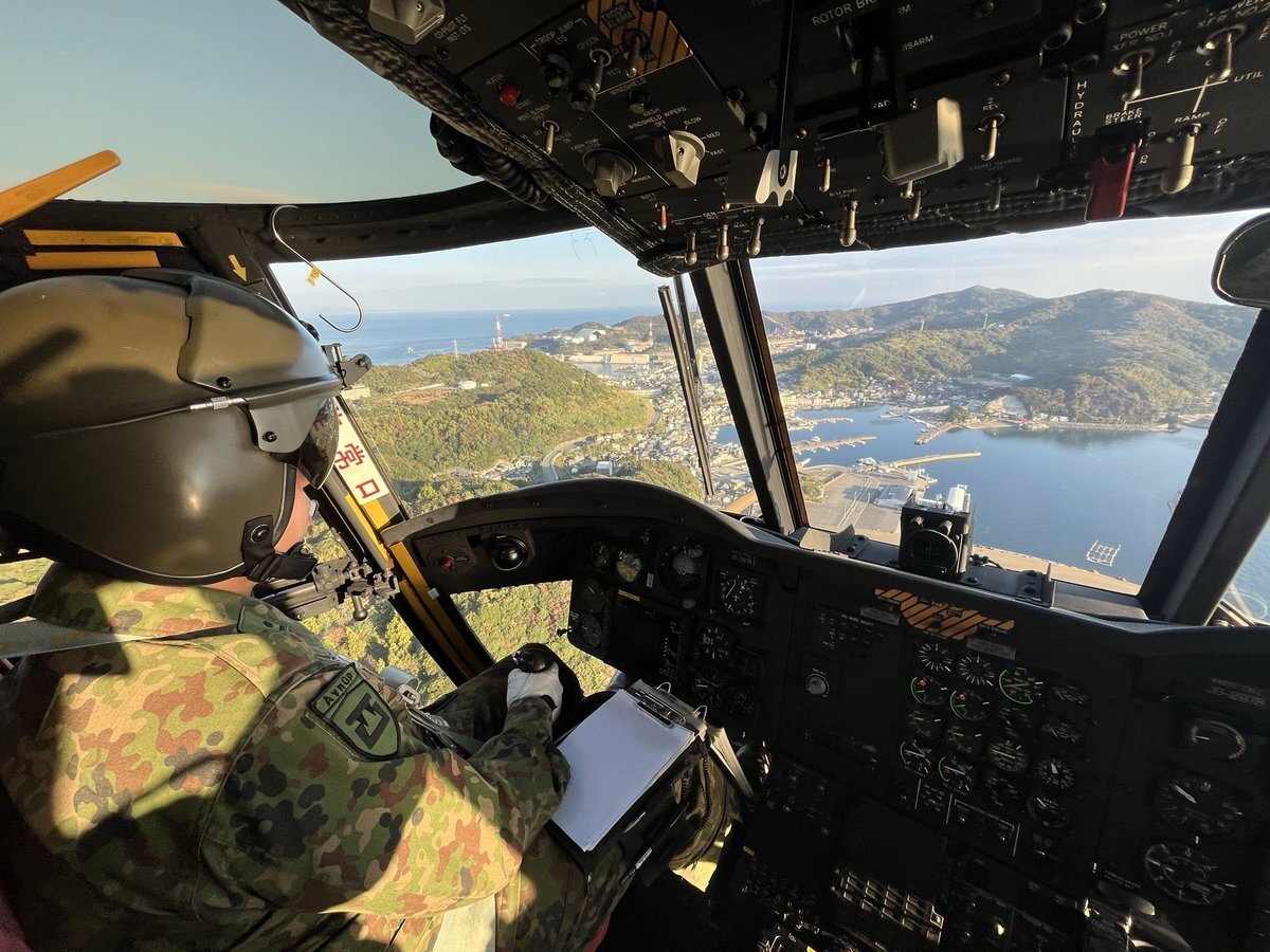 #災害派遣 #大分県 佐賀関の大規模火災の現場での情報収集のため #西部方面ヘリコプター隊 の #UHー1 映像伝送気が燃料の再補給を終えて、再び離陸していきました。UHー1からの情報を元に、各隊が有効な消火活動を実施しております。 #陸上自衛隊 #西部方面航空隊 #第4師団 #情報収集 #映像伝送