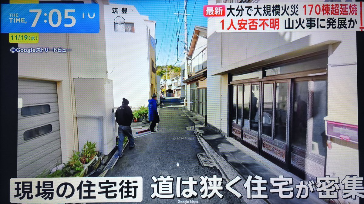 THE TIME 大規模火災が起きた大分県佐賀関の住宅地の道 道幅が狭く消防車が通れず消火活動に影響(消火活動の遅れ発生) 今後の災害防止のため、住民に立ち退きをお願いして、消防車・緊急車両が通れる道を確保する必要があると思う #大分県 #佐賀関 #大規模火災 #住宅密集地 #道幅 #消火活動 pic.x.com/5mJwrhHSLy