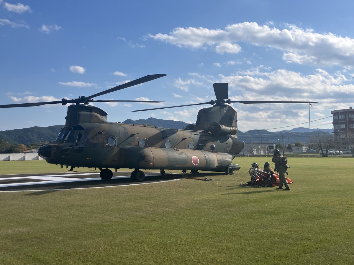 #災害派遣 一刻も早く火災現場へ。大分県佐賀関の大規模火災の現場へ西部方面ヘリコプター隊の #CHー47#消火活動 のため佐賀関へ推進しました。航空機の運航に欠かせない燃料タンクローリーも続いて現地に向かいました。CH-47の能力を最大限活かして消火活動を実施します。 #西部方面航空隊 pic.x.com/Pse6dqzltX