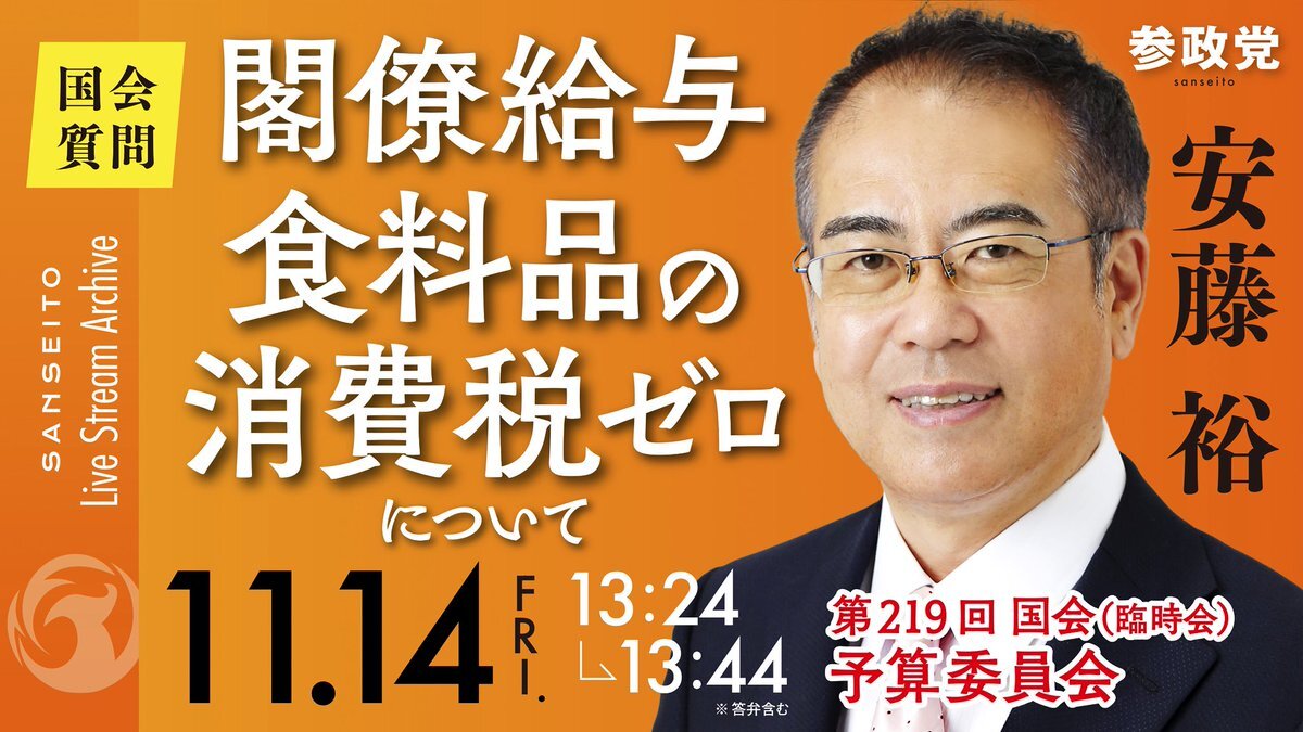 ━━━━━━━━━━━ 国会•配信のお知らせ ━━━━━━━━━━━ 参政党幹事長 #安藤裕 議員が 予算委員会にて質疑を行います。 LIVE配信もいたしますので 是非、ご注目下さい! ------------------------ 🔸11月14日(金) 🔸13:24〜13:44 (答弁含む) 🔸予算委員会 🔸