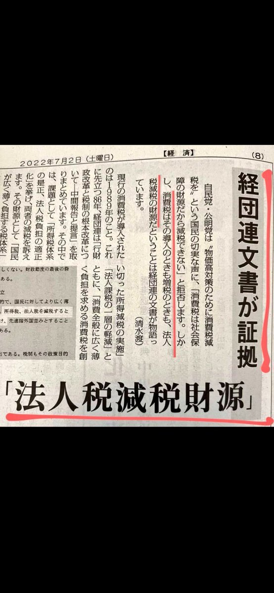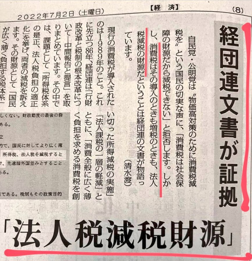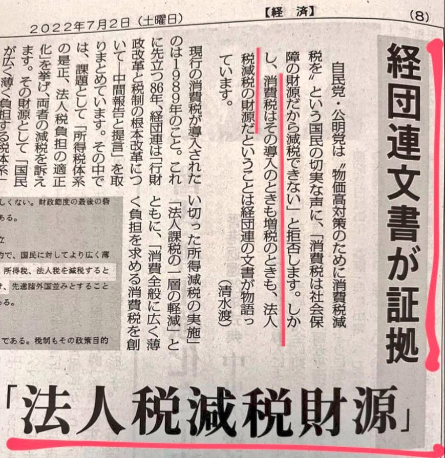 返信先:@toto_0921📢ただ今ツイデモ中📢  @nhk ”消費税は導入のときも増税のときも、法人税減税の財源”と経団連の文書に書いてある⬇️⬇️⬇️ 「消費税=社会保障の財源」がウソである事の証拠です 正に #消費税は特殊詐欺税 だし #史上最大の国家汚職😡 この事実をNHKらメディアもきちんと報じて下さい pic.x.com/2S6HKeuaRC