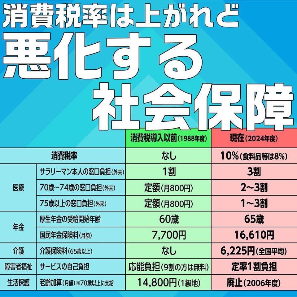 返信先:@toto_0921#日本史上最大の汚職 社会保障が良くなった実感ありますか?保険料UP、年金減額、医療自己負担増。これが消費税の成果ですか? 政権もメディアも「福祉目的」と大ウソ。実態は庶民からの搾取と企業への還流。いつの間にか、貧困が当たり前の国になっていた。 #消費税は特殊詐欺税 pic.x.com/XBlhn3R2J1