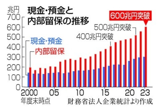#日本史上最大の汚職 大企業の内部留保が600兆円を超えた ろくに賃上げもせず、設備投資もせず一体何に使うつもりですかね?(憲法改悪のCM広告料?自民党らや財務省への巨額献金?) その600兆円の原資は、私たちから搾取した消費税 #消費税は特殊詐欺税 pic.x.com/TzSACOq5tb