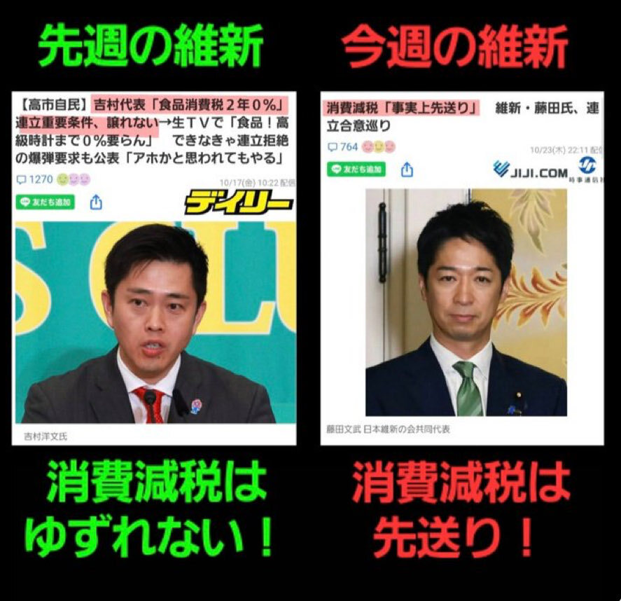 ほらね。 藤田共同代表「消費減税は事実上先送り」news.yahoo.co.jp/articles/3542c… 結局、こういうことなんです。これで「減税国会」は夢のまた夢。 維新、マジでどう責任取るの?